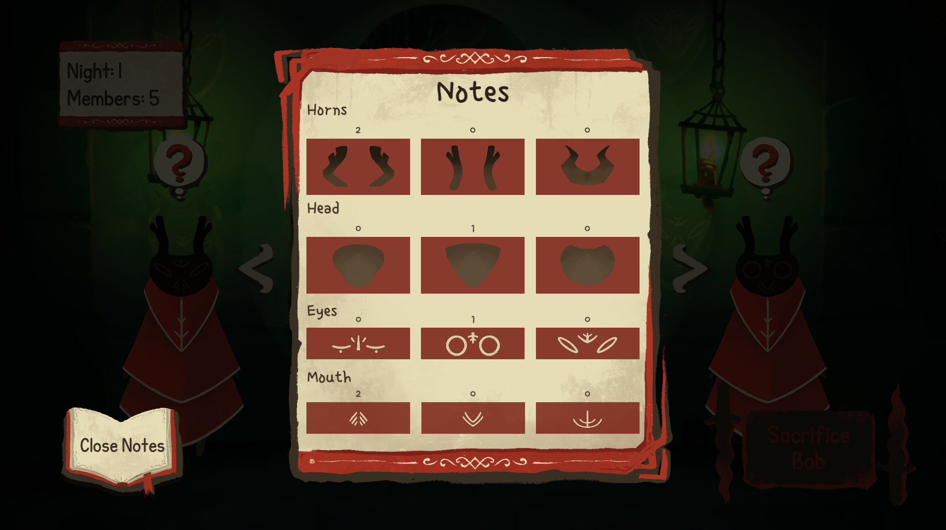 Decipher whom the elder god yearns for by asking the cult members for clues and marking them down in your notepad.
