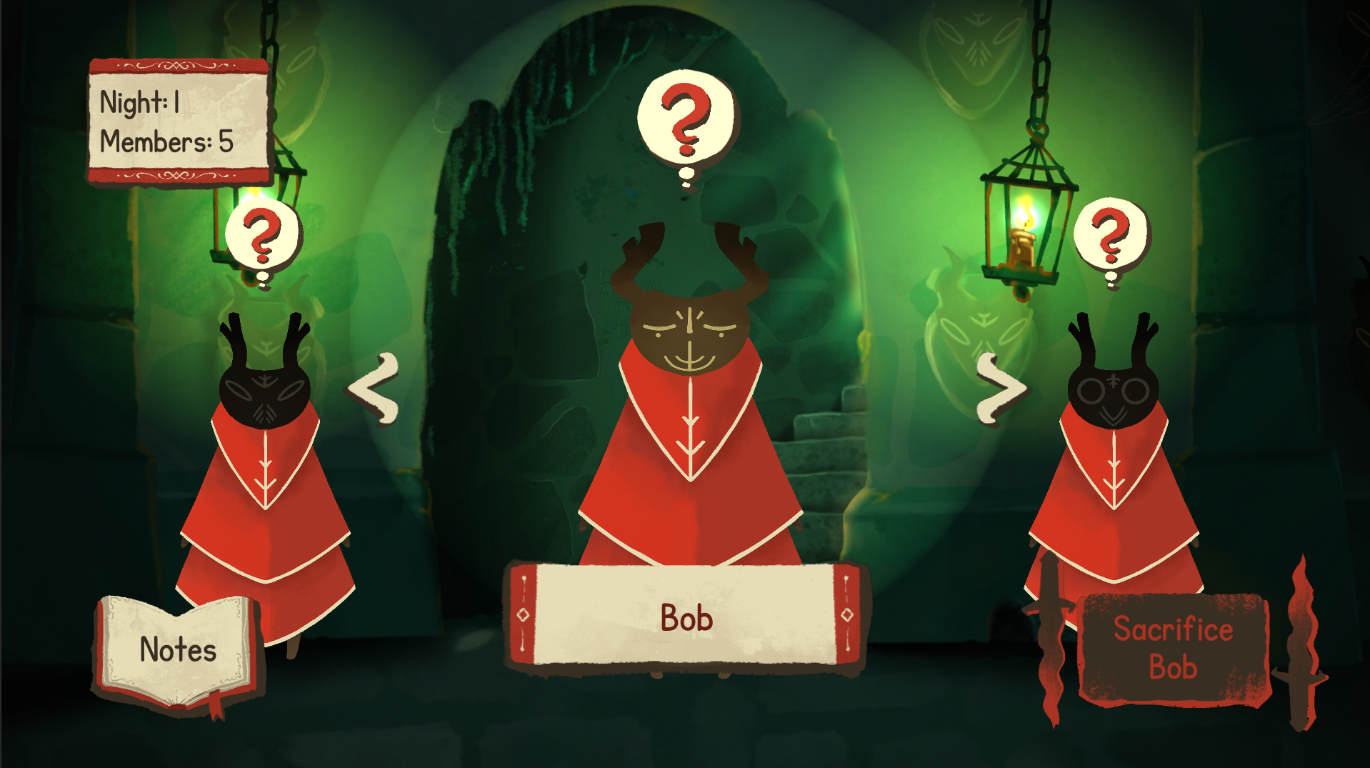You are the cult leader. Your cult is having a sacrificial party! Midnight is coming, and the bloodthirsty elder god is demanding a sacrifice. BUT YOU PARTIED TOO HARD AND FORGOT WHO YOU WERE SUPPOSED TO SACRIFICE!